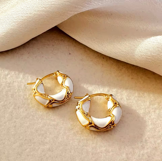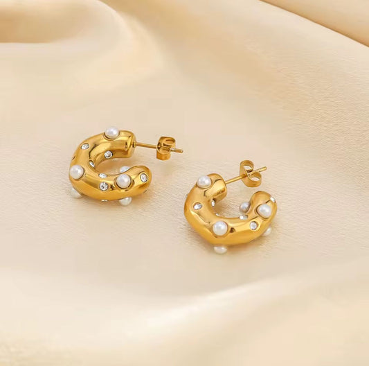 Chunky Gold Hoop Earrings with Pearls & Zircon