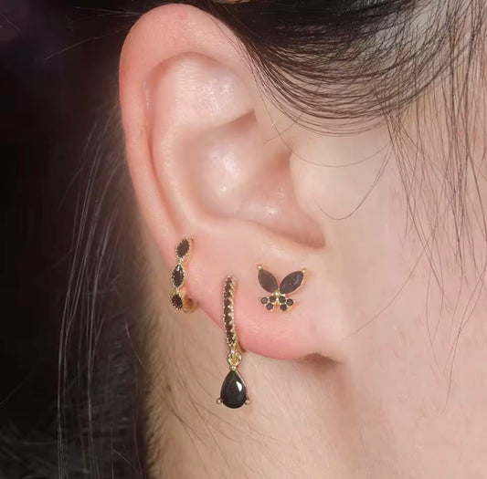 Stainless Steel Ear Cuff Set with Black Details – Modern Style
