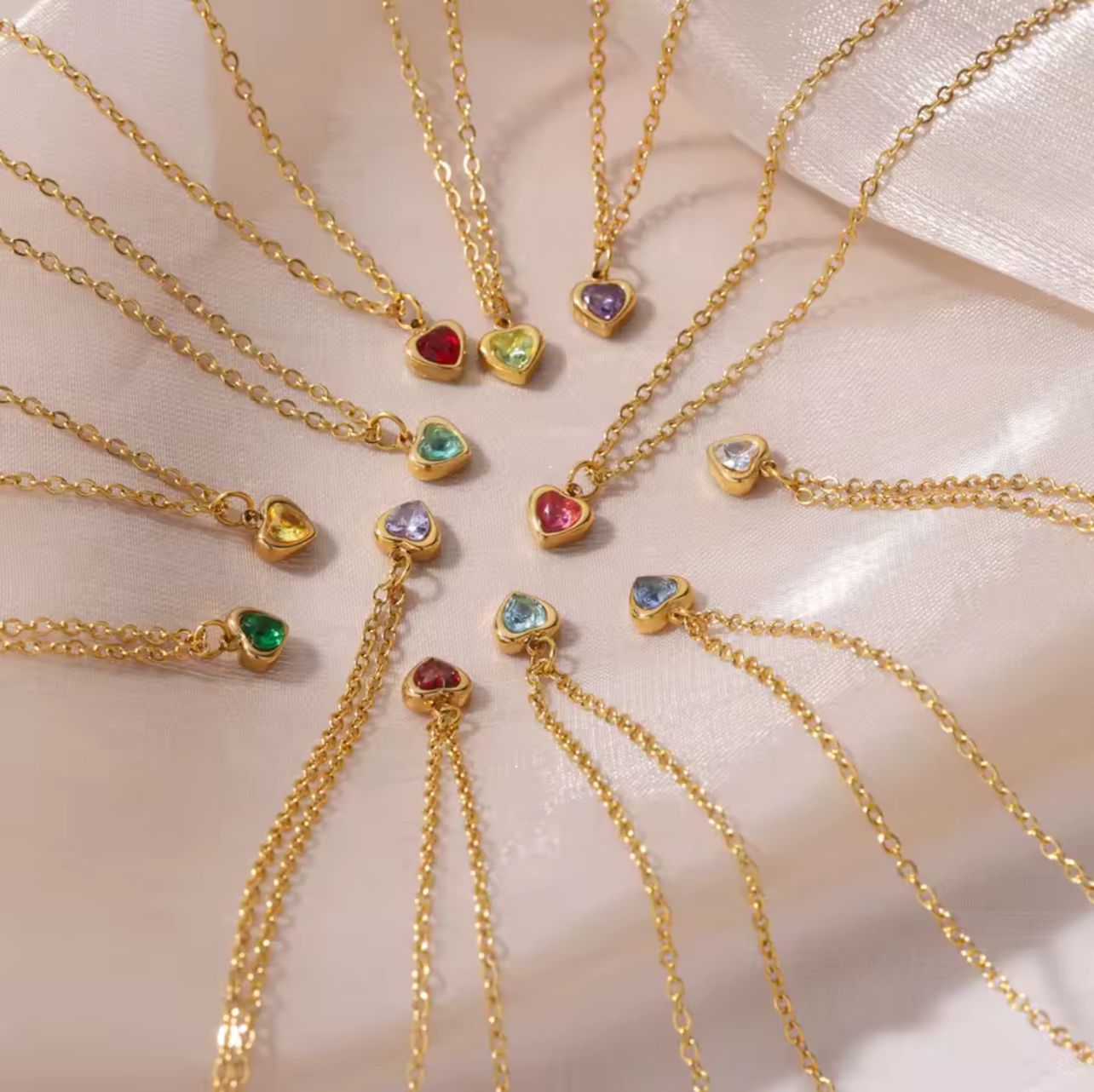 Minimalist Heart Pendant Necklaces Add a subtle sparkle to your everyday look with these minimalist heart pendant necklaces. Crafted from stainless steel and finished in radiant gold, each piece features a colorful heart-shaped zircon stone—perfect for mixing, matching, or gifting. Timeless, elegant, and easy to layer, these necklaces are your new go-to accessory for any outfit.